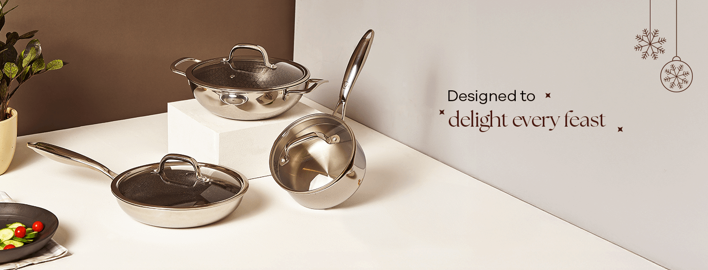 Tri-ply stainless steel cookware is crafted with three layers of different metals, typically stainless steel, aluminium, and another layer of stainless steel. Here are some advantages of tri-ply cookware:
