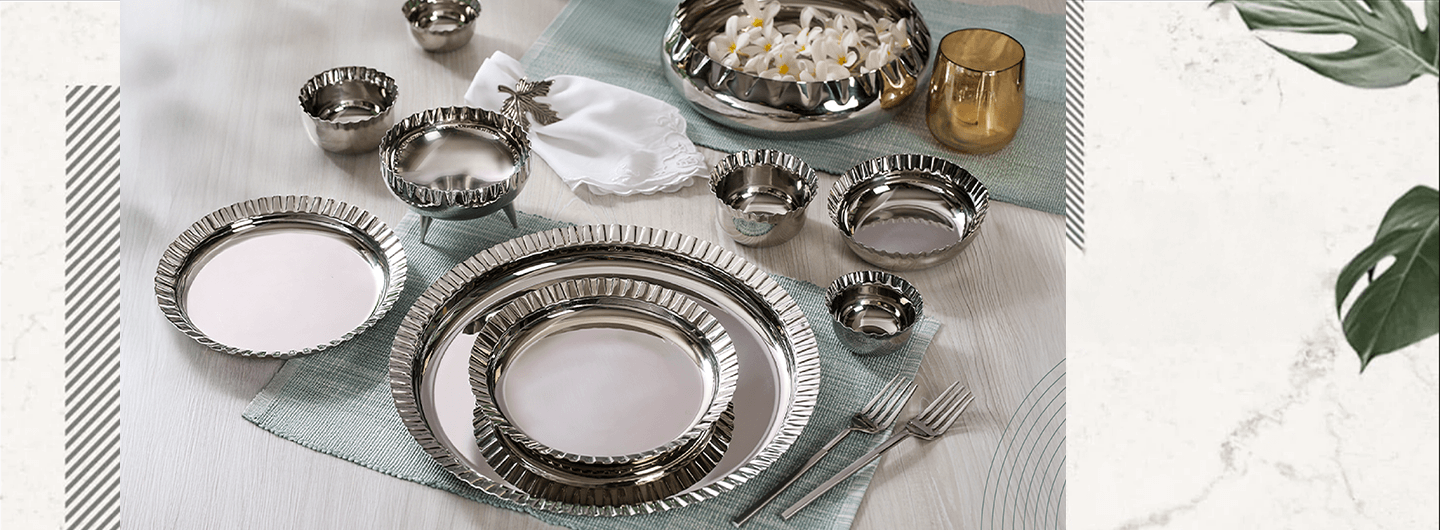 Explore Artt’dinox’s quality dinner sets online, which include steel plate sets, serving bowls, and steel katori sets, and elevate your dining experience!