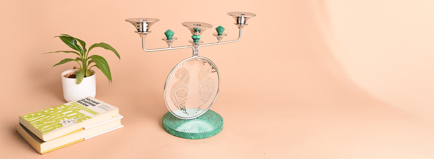 Browse through our excellent flower vases, designer planters, and magnificent steel candle holders.